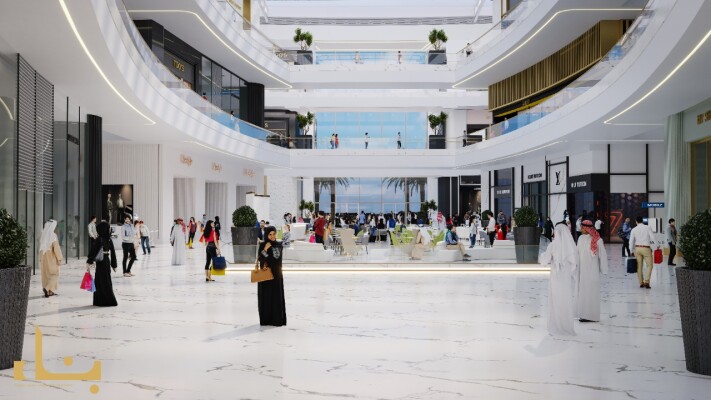 و سيكون بمساحة اجمالية 10000 متر مربع ,بالاضافة الى وجود صالات مطاعم داخلية للوجبات السريعة و صالات العاب و ترفيه بمساحة 18000 متر مربع و صالات السينما بمساحة 5500 متر مربع كما يحتوي على كراجات بمساحة 270 الف متر مربع تتسع لـ عدد كبير من المركبات يصل الى (5500) مركبة و يحتوي على نافورة هي الاضخم و الاولى من نوعها في العراق و يعد هذا المشروع من اضخم المشاريع التجارية في العراق.