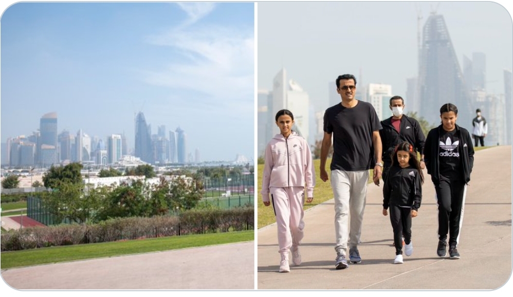 أمير قطر يمارس الرياضة بصحبة ابناءه في شوارع الدوحة