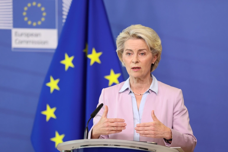 وتوقفت دير لاين -في كلمتها- مع أزمة تغير المناخ، مشيرة إلى أن “الأنهار حاليا تجف والحرارة ترتفع”، وهي أزمة تؤثر على الأوروبيين وتتسبب في ارتفاع الأسعار 10 أضعاف، حسب قولها.