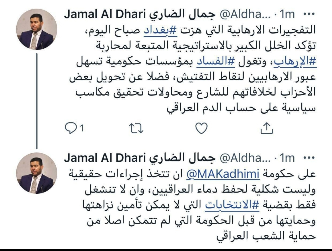 الضاري مغردا: التفجيرات التي هزت بغداد تؤكد الخلل الكبير في الاستراتيجية الاستخبارية لمحاربة الارهاب