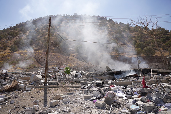 ERBIL, IRAQ - SEPTEMBER 28: Smoke rises over the headquarters following an attack in the Koy Sanjaq district of Erbil, Iraq on September 28, 2022. Iran's powerful Islamic Revolutionary Guard Corps launched attacks on the Kurdish region of northern Iraq targeting armed rebel groups. The headquarters of the Komala Party, the Democratic Party of Iranian Kurdistan (IKDP) and the Kurdistan Freedom Party (PAK) were hit with missiles and drones. The attacks come amid nationwide protests in the wake of the death of a 22-year-old Iranian woman in police custody last week, who was arrested for not wearing the hijab properly. (Photo by Fariq Faraj/Anadolu Agency via Getty Images)