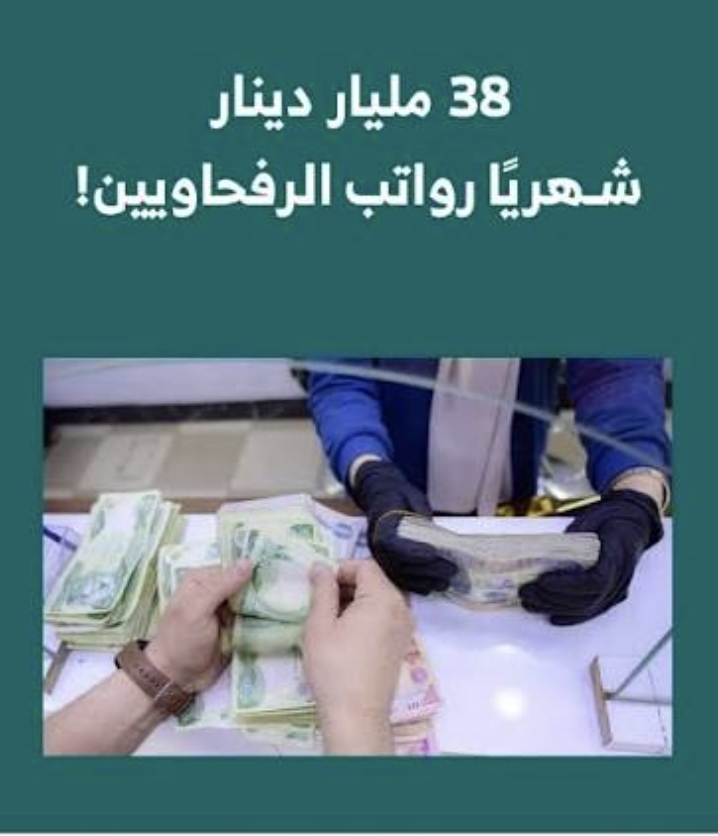 في مشهد يعكس عمق الانحراف في أولويات ما يسمى بالدولة العراقية أقدمت وزارة المالية مجددًا على صرف رواتب ما يُعرف بـ”مستفيدي رفحاء” الذين اخذوا وياخذون اموال العراق بدون وجه حق والبالغة أكثر من 49 مليار دينار شهريًا لـ32 ألف شخص أغلبهم يعيش خارج العراق في أوروبا وأمريكا وإيران. الأدهى من ذلك أن الصرف تم قبل موعده بتسعة أيام في حين ما زال مئات آلاف من المتقاعدين داخل العراق ينتظرون بفارغ الصبر صرف رواتبهم التي غالبًا ما تتأخر بسبب “الإجراءات الفنية” و”الأزمة المالية” والغريب أن هذه الاجراءات والأزمات لاتظهر كعقبات امام الرفحاويين ولكنها تظهر بقوة عند موعد استحقاق المتقاعد العراقي الذي أفنى زهرة شبابه وحياته بالوظيفة خدمةً للوطن في حين يتمتع الرفحاوي بالامتيازات والرواتب المجزيه فقط لانه قضى كم شهر في معسكر رفحه الترفيهي ؟!؟!؟