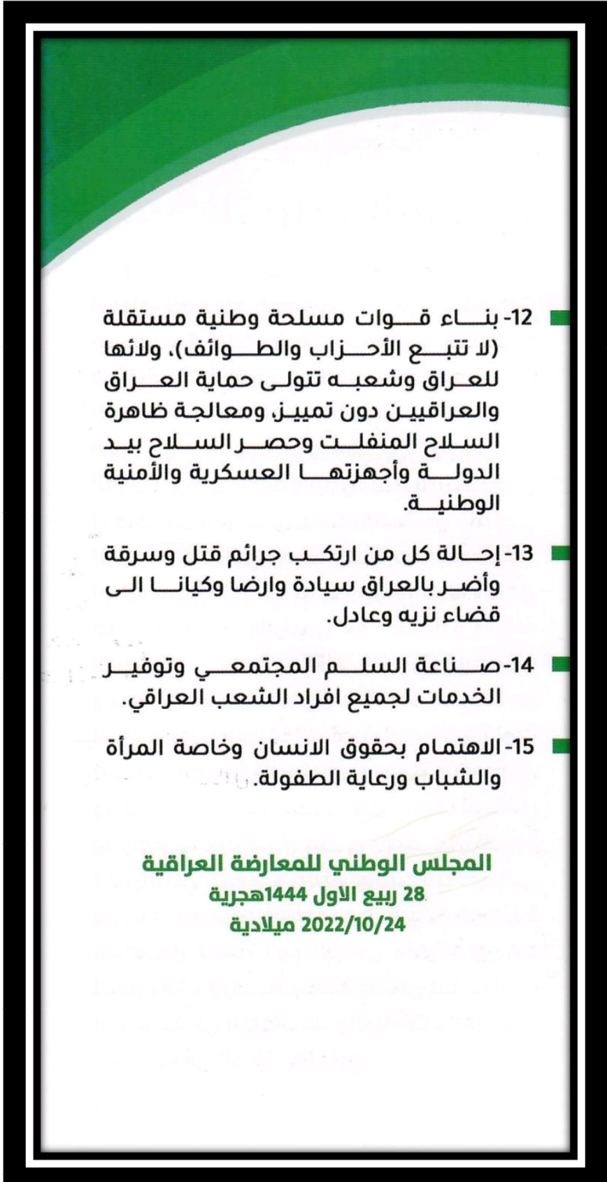 المجلس الوطني للمعارضة العراقية يرسمح ملامح المرحلة المستقبلية للعراق