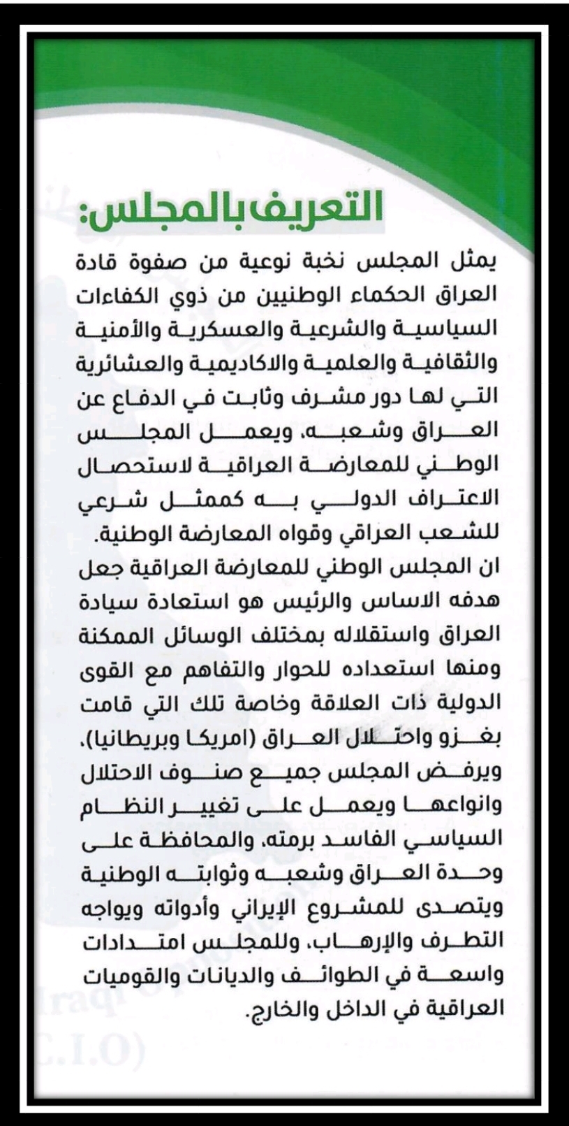 موقف المجلس الوطني للمعارضة العراقية حيال الازمة في العراق وسبل حلها