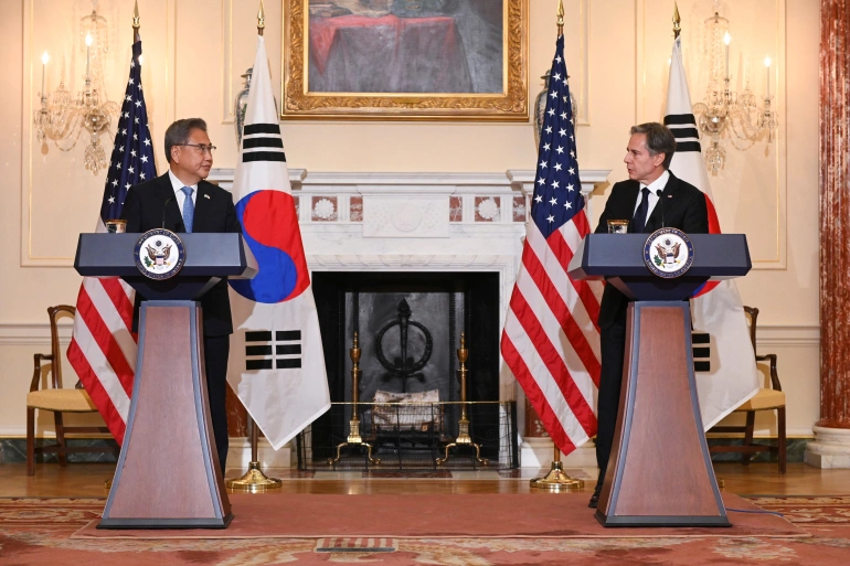 وقال وزير الخارجية الأميركي أنتوني بلينكن -خلال مؤتمر صحفي مشترك مع نظيره الكوري الجنوبي بارك جين- إن الضغط على بيونغ يانغ سيتواصل وسيزداد -إن استدعت الضرورة- إلى أن تنخرط معنا ومع شركائنا وحلفائنا في الحوار والدبلوماسية.