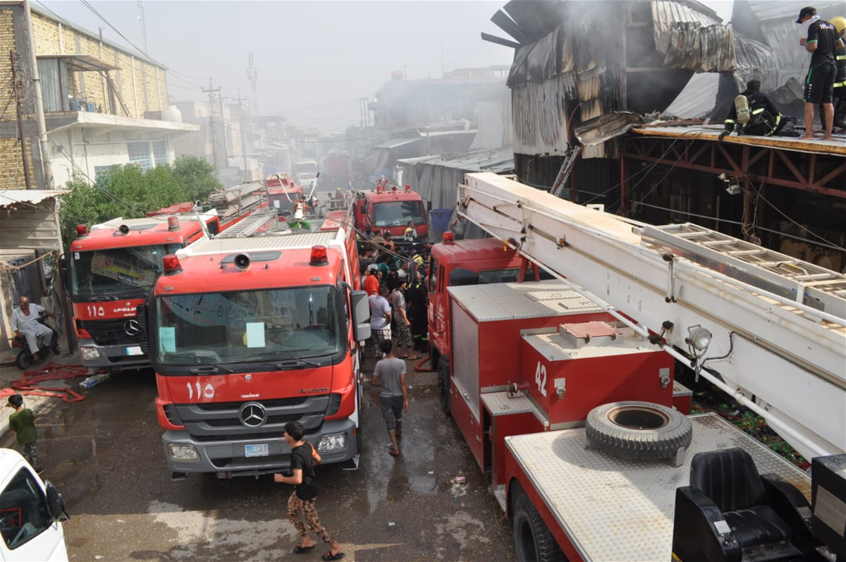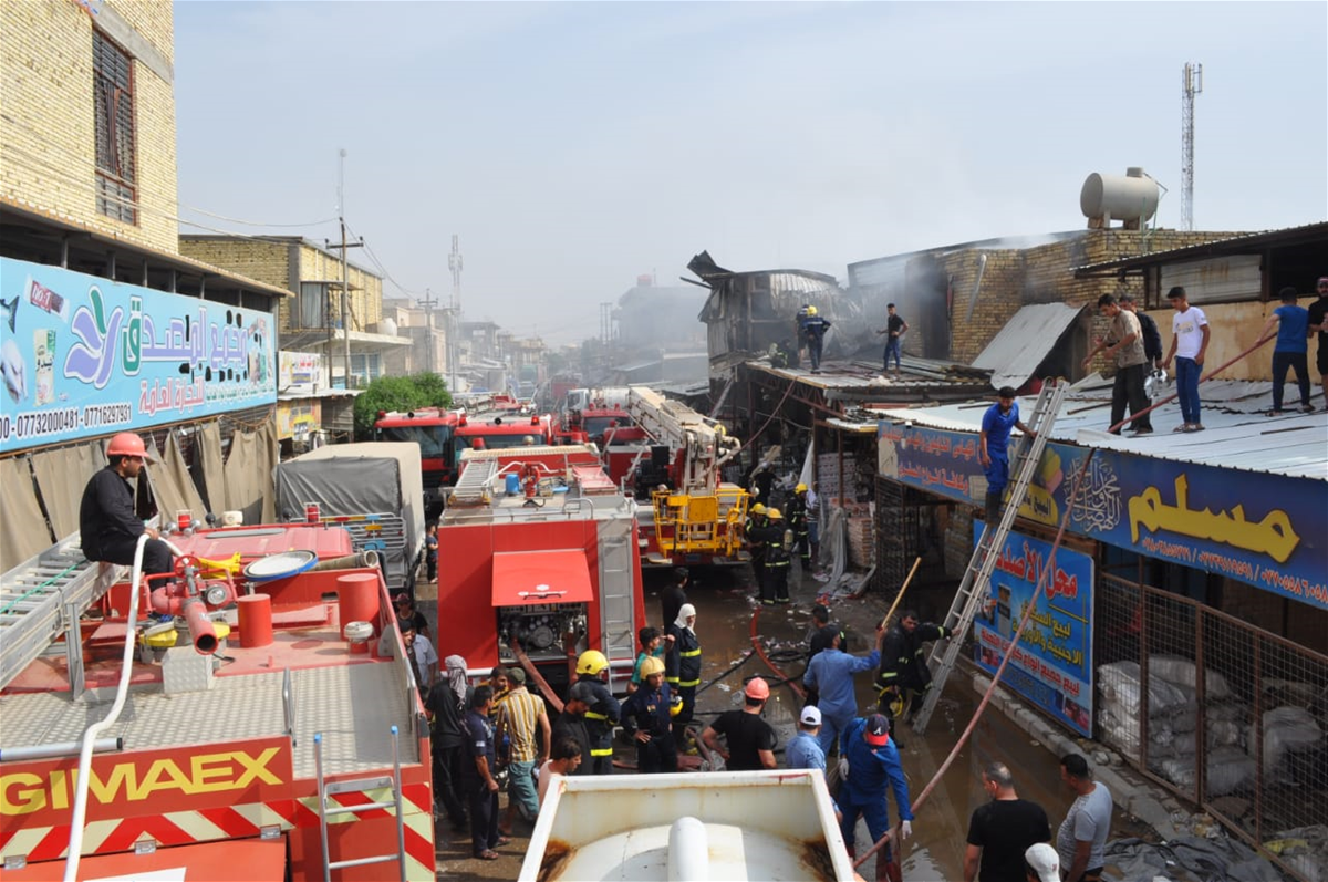 بالصور: النيران تلتهم مخازن بيع الجملة للمواد الغذائية في ميسان